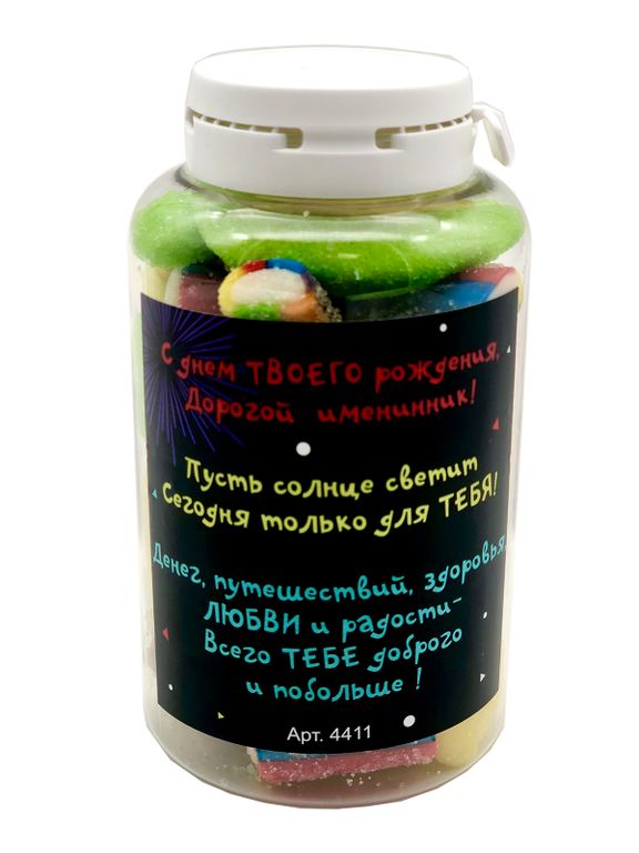 Артикул: 4450 Артикул: 4450 Подарочный мармелад "С днём рождения!" Салют 335 ₽ В корзину В корзину Жевательный европейский мармелад в баночке! Тип упаковки - твердая (баночка с герметичной крышкой) Размер баночки 60х110 мм Объем банки - 250мл Упаковано Россия Жевательный европейский мармелад в баночке! Тип упаковки - твердая (баночка с герметичной крышкой) Размер баночки 60х110 мм Объем банки - 250мл Упаковано Россия Описание Описание Состав: лимонная кислота, желатин, пчелиный воск, сахар, глюкозный сироп Поделиться