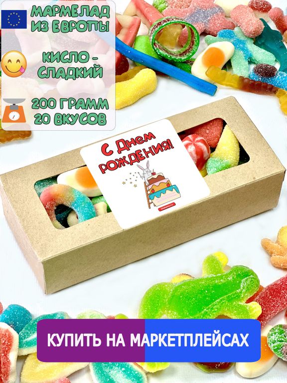 Вкусный жевательный желейный мармелад из Европы. В составе мармеладного набора разные формы фигурного мармелада: брусочки, палочки, фигурки, пластинки, ягоды. Это тот самый пиратский бочковой мармелад, в нем присутствуют сладкие и кислые вкусы, мармелад в кислой и сладкой обсыпке . Мармелад упаковывается в герметичную упаковку - банка, бокс, пакет, коробка мармелада - так он остается свежим и мягким долгое время. Набор - супермикс нежного и сочного мармелада, сюрприз и подарок себе, ребенку, дочке, сыну, брату, сестре, внуку, внучке. Также это вкусняшки взрослым маме, папе, бабушке, другу, подруге, жене, мужу, девушке, парню, коллеге, любимой, любимому, мужчине, женщине. Мармеладный микс это полезные сладости для любого повода: на праздник, день рождения, юбилей, новый год, рождество, 14 февраля, 23 февраля, 8 марта, 9 мая, 1 сентября, выпускной. Наши сладости сертифицированы. Доставляем радость и хорошее настроение!