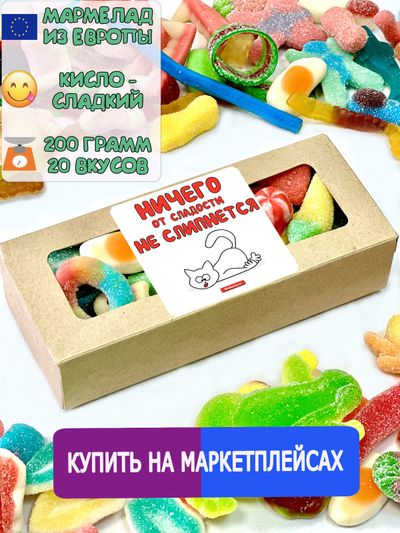 Вкусный жевательный желейный мармелад из Европы. В составе мармеладного набора разные формы фигурного мармелада: брусочки, палочки, фигурки, пластинки, ягоды. Это тот самый пиратский бочковой мармелад, в нем присутствуют сладкие и кислые вкусы, мармелад в кислой и сладкой обсыпке . Мармелад упаковывается в герметичную упаковку - банка, бокс, пакет, коробка мармелада - так он остается свежим и мягким долгое время. Набор - супермикс нежного и сочного мармелада, сюрприз и подарок себе, ребенку, дочке, сыну, брату, сестре, внуку, внучке. Также это вкусняшки взрослым маме, папе, бабушке, другу, подруге, жене, мужу, девушке, парню, коллеге, любимой, любимому, мужчине, женщине. Мармеладный микс это полезные сладости для любого повода: на праздник, день рождения, юбилей, новый год, рождество, 14 февраля, 23 февраля, 8 марта, 9 мая, 1 сентября, выпускной. Наши сладости сертифицированы. Доставляем радость и хорошее настроение!