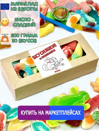 Вкусный жевательный желейный мармелад из Европы. В составе мармеладного набора разные формы фигурного мармелада: брусочки, палочки, фигурки, пластинки, ягоды. Это тот самый пиратский бочковой мармелад, в нем присутствуют сладкие и кислые вкусы, мармелад в кислой и сладкой обсыпке . Мармелад упаковывается в герметичную упаковку - банка, бокс, пакет, коробка мармелада - так он остается свежим и мягким долгое время. Набор - супермикс нежного и сочного мармелада, сюрприз и подарок себе, ребенку, дочке, сыну, брату, сестре, внуку, внучке. Также это вкусняшки взрослым маме, папе, бабушке, другу, подруге, жене, мужу, девушке, парню, коллеге, любимой, любимому, мужчине, женщине. Мармеладный микс это полезные сладости для любого повода: на праздник, день рождения, юбилей, новый год, рождество, 14 февраля, 23 февраля, 8 марта, 9 мая, 1 сентября, выпускной. Наши сладости сертифицированы. Доставляем радость и хорошее настроение!