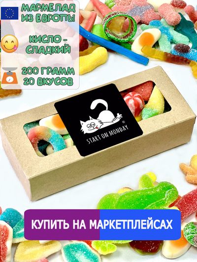 Сладости из Европы /Кислый сладкий жевательный мармелад /Start on Monday/Более 20 вкусов (200грамм)