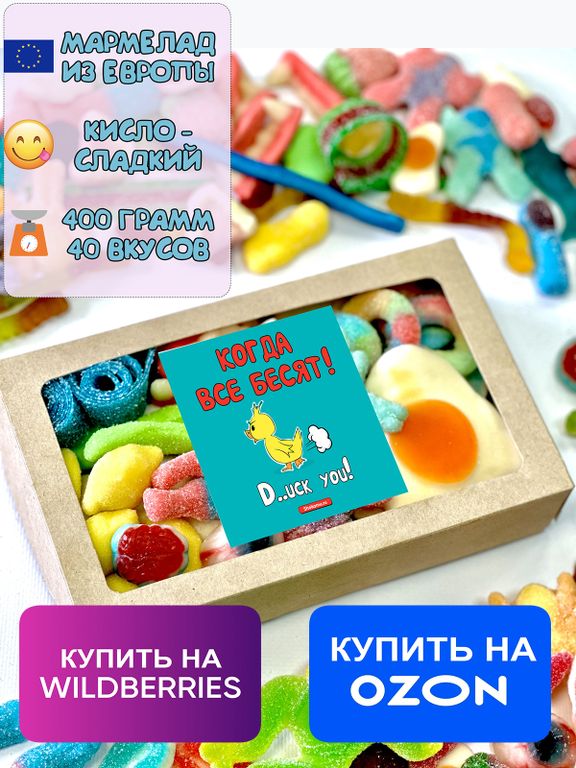 Сладости из Европы/ Кислый сладкий жевательный европейский мармелад/Когда все бесят!/400 грамм, ассорти вкусов