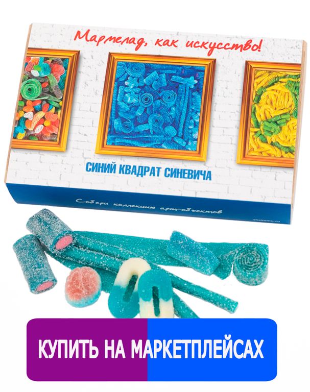 Кислый сладкий жевательный европейский мармелад/Синий квадрат Синевича/ Собери коллекцию арт-объектов/ Мармелад, как искусство!/ 500 грамм