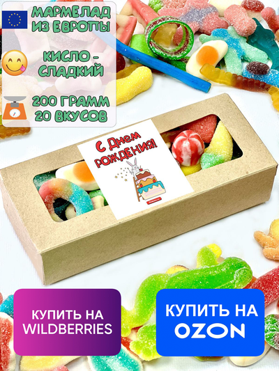 Вкусный жевательный желейный мармелад из Европы. В составе мармеладного набора разные формы фигурного мармелада: брусочки, палочки, фигурки, пластинки, ягоды. Это тот самый пиратский бочковой мармелад, в нем присутствуют сладкие и кислые вкусы, мармелад в кислой и сладкой обсыпке . Мармелад упаковывается в герметичную упаковку - банка, бокс, пакет, коробка мармелада - так он остается свежим и мягким долгое время. Набор - супермикс нежного и сочного мармелада, сюрприз и подарок себе, ребенку, дочке, сыну, брату, сестре, внуку, внучке. Также это вкусняшки взрослым маме, папе, бабушке, другу, подруге, жене, мужу, девушке, парню, коллеге, любимой, любимому, мужчине, женщине. Мармеладный микс это полезные сладости для любого повода: на праздник, день рождения, юбилей, новый год, рождество, 14 февраля, 23 февраля, 8 марта, 9 мая, 1 сентября, выпускной. Наши сладости сертифицированы. Доставляем радость и хорошее настроение!