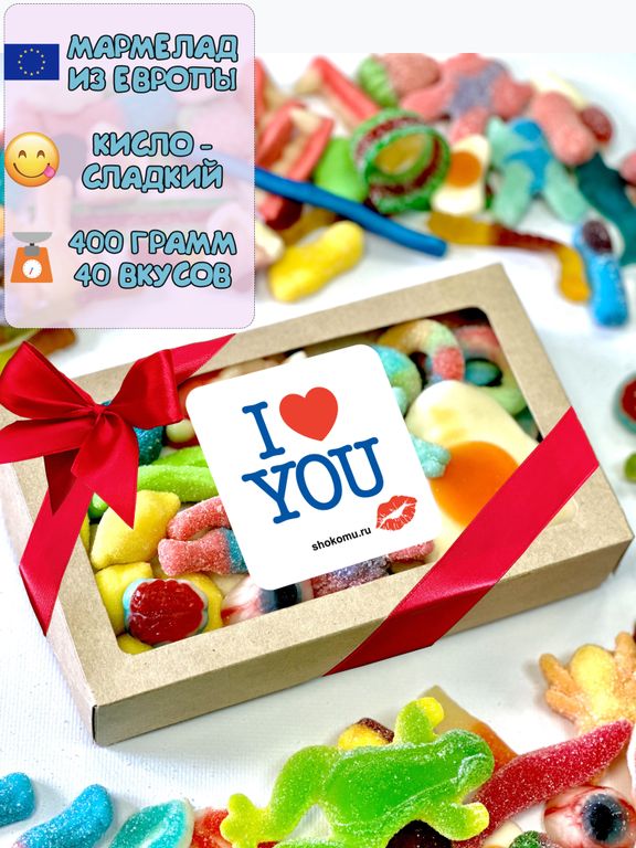 Сладости из Европы/ Кислый сладкий жевательный европейский мармелад/I LOVE U/400 грамм, ассорти вкусов