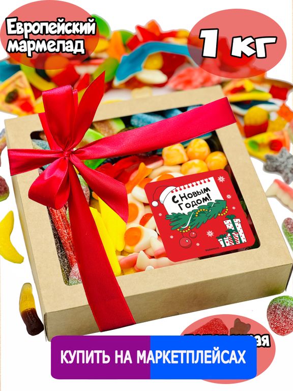 Мармелад собран из ассорти более 20 видов в обсыпке и без обсыпки, вкусы кислые и сладкие. В наборе 1 кг мармелада! То самое лакомство, которое содержит натуральные и вкусные ингредиенты и несёт заряд хорошего настроения. Побалуйте себя в любое время года. Станет хорошим угощением на праздничной вечеринке. Не содержит глютен. Супермикс нежнейших сладостей из Европы. Такой подарок не оставит равнодушным ни одного сладкоежку. В составе натуральные соки и экстракты фруктов