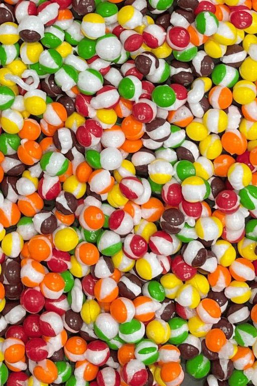 Это популярные конфеты Skittles, которые методом Freeze drying (лиофилизации или сублимации) вздуваются и высушиваются досуха! Они легкие, очень хрустящие и моментально ТАЮТ во рту, оставляя после себя уникальный взрыв вкуса! Просто космический хруст!