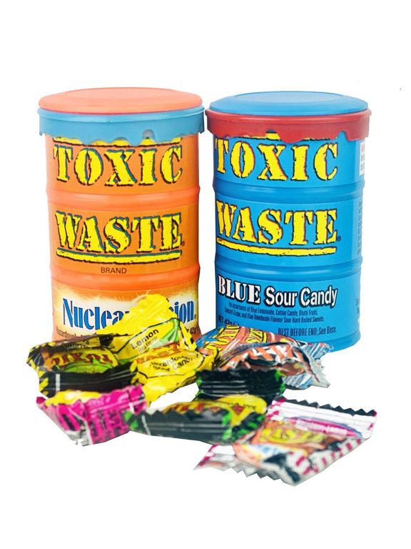 Купить знаменитыe "Toxic Waste" - леденцы с суперкислым вкусом! Но не выплевывайте их сразу - дождитесь момента - будет контрастный сладкий вкус! Можно играть на вечеринках - кто сможет не состроить кислую "мину" дольше всех! А тебе слабо попробовать?