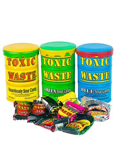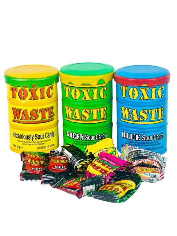 Купить знаменитыe "Toxic Waste" - леденцы с суперкислым вкусом! Но не выплевывайте их сразу - дождитесь момента - будет контрастный сладкий вкус! Можно играть на вечеринках - кто сможет не состроить кислую "мину" дольше всех! А тебе слабо попробовать?
