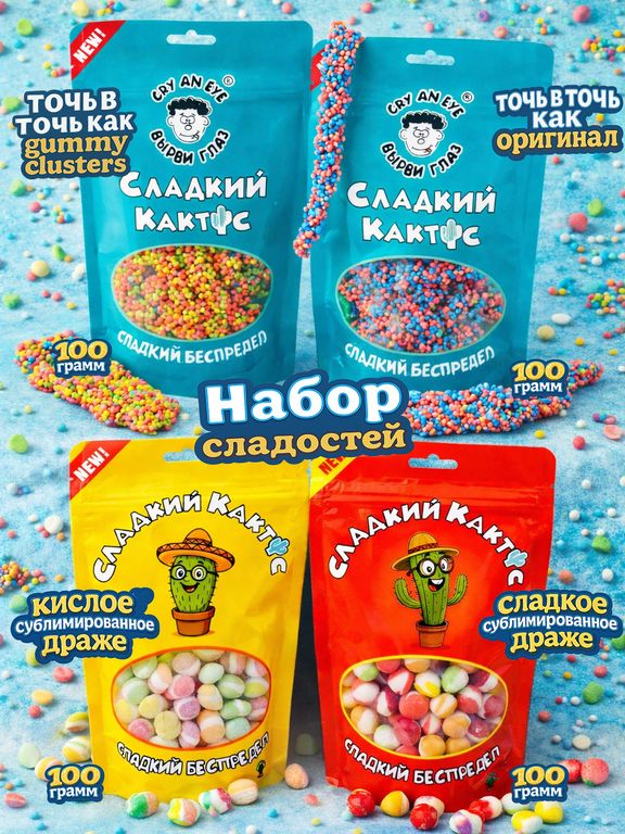 Состав: декстроза; сахар; сироп глюкозы; желатин; гуммиарабик; сорбит; лимонная кислота; яблочная кислота; вода; пектин; искусственные красители и ароматизаторы
